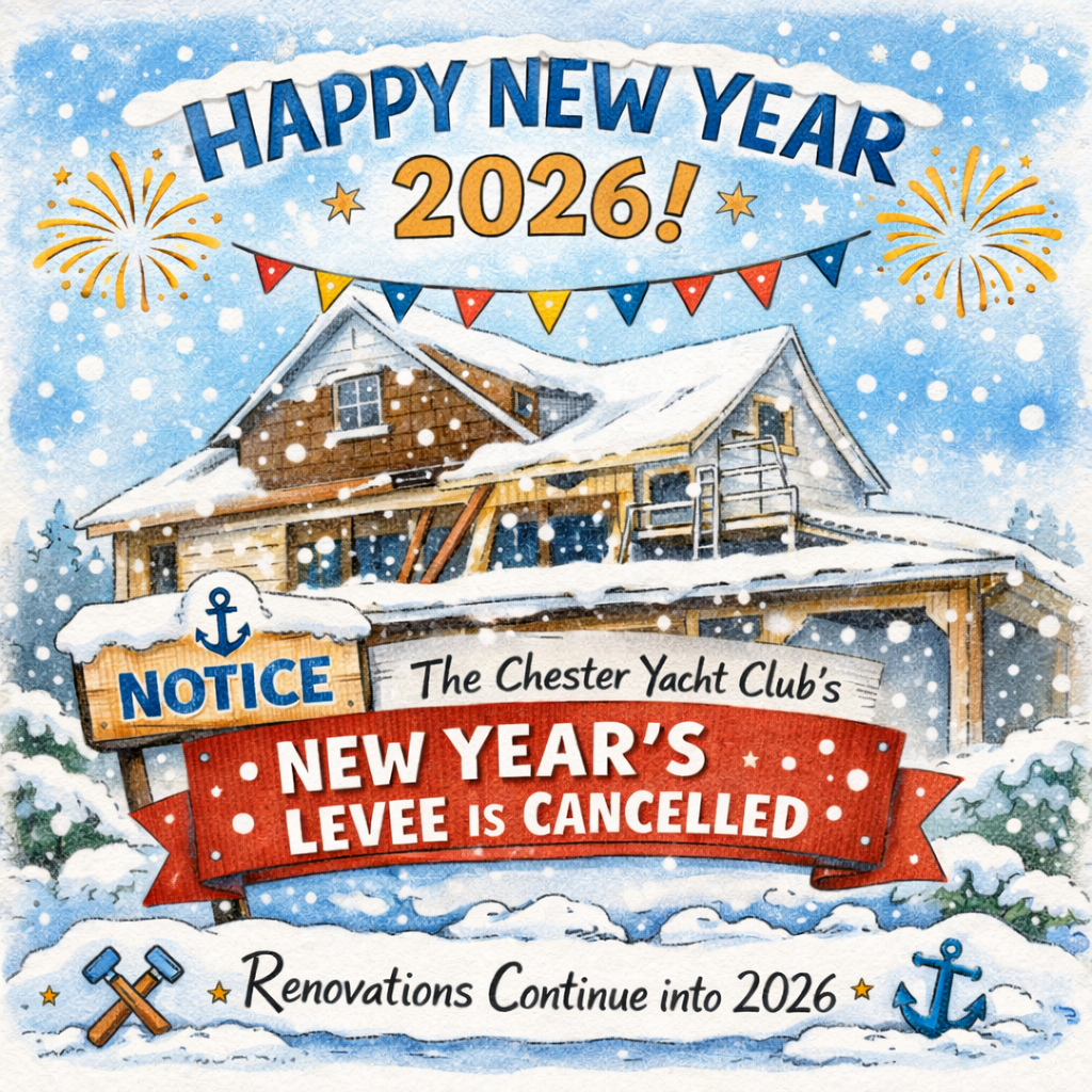 As many of you know, the clubhouse is currently under construction and unfortunately is not suitable to host a crowd at this time. As a result, Chester Yacht Club will NOT be open for the New Year’s Day Levee or Polar Swim on January 1st.